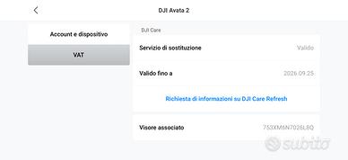Vendo per passaggio ad autocotruito, DJI avata 2 con tre batterie e dji care valida fino al 25/09/2026