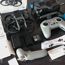DJI Avata Pro-View Combo con Fotocamera (con Telecomando RC Motion DJI Avata - Immersione FPV Totale con Kit Completo Vivi l'emozione del volo in prima persona con questo DJI Avata Pro-View Combo, un drone FPV compatto e agile, ideale per catturare filmati stabilizzati in 4K ultra-grandangolari in sicurezza, grazie ai paraeliche integrati. Caratteristiche Principali Esperienza Immersiva: Il visore DJI Goggles 2 (o DJI Integra, a seconda del modello esatto del Pro-View Combo) offre una trasmissione video HD a bassa latenza, facendoti sentire realmente a bordo