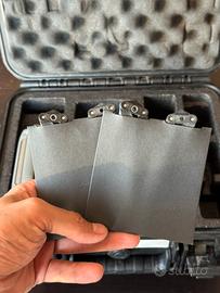 Inclusi: 5 batterie, eliche di ricambio, filtro nd 32, caricabatterie da rete, caricabatterie da auto, radiocomando (con piccola imperfezione estetica che non influisce sul display) e valigetta impermeabile, anch’essa usurata ma ancora super resistente e perfetta per il trasporto.