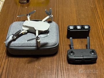 DJI mini, custodia di trasporto, radiocomando, 3 batterie + custodia caricabatterie e set di lenti/filtro.