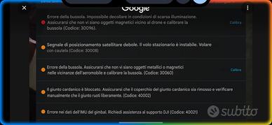 vendo dji mini 2 con errori Guarda ultima foto. si accende vola colk presenta queste errori. viene venduto come non funzionante., anche se funzionante. qualcuno che si intende lo agiusta. con drone regalo una scheda madre sempre dji mini 2 pero non so se funzionante. prezzo 110€