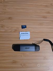 Lascio inclusa nel drone una Micro SD Samsung da 256 GB ad alta velocità (ideale per il 4K), completa di adattatore USB/USB-C per scaricare facilmente i video su PC o telefono.