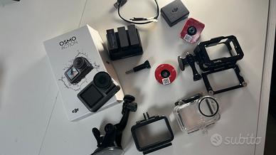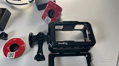 Batterie originale + 2 compatibili, cavo di ricarica, vari accessori originali, gabbia originale + gabbia per immersione + gabbia in metallo Smallrig