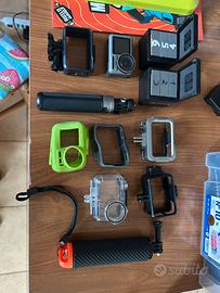 vendo come da titolo dji osmo action comprata nel 2022 ed utilizzata solo in bici, si e no una 15ina di volte si presenta in condizioni quasi perfette tranne un paio di segni e botte sulla lente (non danno problemi ma in caso si volesse sostituirla su amazon la si trova a 10€ e basta svitarla) assieme alla dji do anche 6 batterie con due relativi carica batterie per tutte e 6, 1 originale dji e 5 non originali ma più che valide due cover in silicone, due case in piastica, uno in alluminio e uno subacqueo, vari attacchi un treppiede che fa anche da selfie stick e una cestie (ultima foto) e un impugnatura per utilizzare la dji sott’ acqua galleggiante