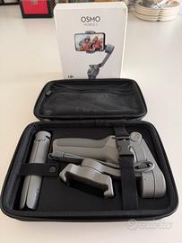 DJI Osmo Mobile 3 in ottime condizioni, perfetto per chi vuole realizzare video stabili e fluidi con lo smartphone. Compatto, richiudibile e molto comodo da portare ovunque, è ideale per vlog, riprese di viaggio, social e contenuti creativi. Il gimbal pesa 405 g e supporta smartphone con larghezza tra 62 e 88 mm e peso compatibile fino a circa 200 g, quindi adatto alla maggior parte dei telefoni moderni. Inclusi nel prezzo: •sacca per riporlo; •treppiede; •custodia rigida che contiene tutto in modo ordinato e protetto. Caratteristiche principali: •stabilizzazione a 3 assi; •design pieghevole e pratico; •autonomia fino a 15 ore; •facile da usare e veloce da montare.