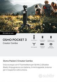 Fotocamera digitale con CMOS da 1'' e video 4K/120fps, stabilizzazione a 3 assi, tracciamento volti/oggetti, messa a fuoco rapida, microfono incluso, vlog camera. Ancora da spacchettare Inclusi nella confezione: Cavo PD da tipo C a tipo C x1, Cinturino da polso DJI x1, Clip magnetico per DJI Mic 2 x1, Custodia da trasporto per Osmo Pocket 3 x1, Custodia protettiva per Osmo Pocket 3 x1, Impugnatura con batteria integrata per Osmo Pocket 3 x1, Manico con filettatura da 1/4″ per Osmo Pocket 3 x1, Mini-treppiede per Osmo x1, Obiettivo grandangolare per Osmo Pocket 3 x1, Osmo Pocket 3 x1, Paravento per DJI Mic 2 x1, Trasmettitore di DJI Mic 2 (Shadow Black) x1