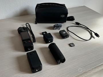 dji Osmo Pocket 3 Creator Combo Il kit comprende: - Videocamera stabilizzata tascabile - Trasmettitore di dji mic 2 (+ clip magnetico e paravento) - Impugnatura con batteria integrata - Obiettivo grandangolare (15 mm) - Manico - Cinturino da polso - Cavo PD da tipo C a tipo C - Custodia da trasporto Condizioni perfette pari al nuovo. Disponibile spedizione o consegna a mano su Milano.