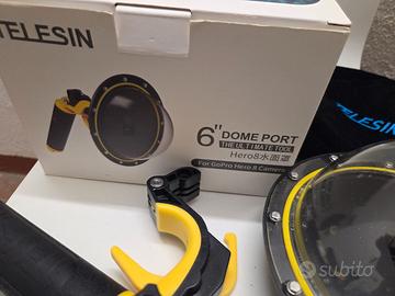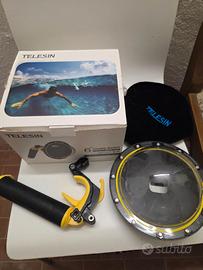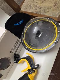 dome per gopro 8, marca telesin, accessorio per fare foto metà sott'acqua e metà sopra, come foto sulla scatola