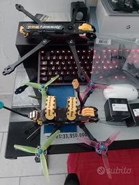 Speedybee Mario con motori Axisflying 2207.5, stack Foxeer 405 V2, Runcam Phoenix SE V2, VTX Foxeer 2.5W leggermente modificata con prolunga antenna saldata, antenna Foxeer Lollipop, GPS Walksnail. Visore Eachine EV800DM con lente originale optnional. Frame 8" nuovo soltanto assemblato Speedybee Mario Fold con 4 motori nuovi ancora confezionati Axisflying 2810, 8 eliche 7" e due 8"