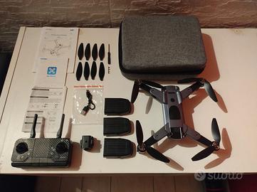 Drone Hytobp S166 GPS, classe Open A1, peso 249 grammi (senza patentino), tripla fotocamera frontale 4K inclinabile di 90°, telecamera sottoscocca, motori brushless, richiudibile, completo di 3 batterie (60 min. totali), cavo USB, controller portata fino a 1 km, sensore anti ostacoli (rimovibile), 8 eliche (A+B) di ricambio, 4 viti eliche di ricambio, cacciavite, manuale operativo, manuale tecnico, manuale app, tutti in italiano, borsa originale, funzioni decollo/atterraggio automatici, funzione seguimi, funzione volo circolare, funzione volo pianificato, ritorno automatico con tasto o in caso di perdita segnale/batteria scarica, luci verdi/rosse di segnalazione. Perfetto per muovere i primi passi con i droni senza rinunciare alla stabilità di volo grazie al GPS integrato. Tutto in perfette condizioni.