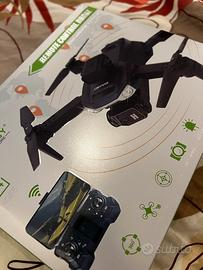 Drone con radiocomando, videocamera HD, postazione per telefono, luci led, con batteria e eliche di ricambio. Carico in mezz’ora e 6 ore di autonomia. mai usato.