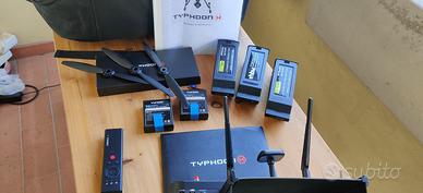 Typhoon H con real sense Intel installato più molti accessori vedi foto manuali d'uso in italiano il tutto in imballi originali zaino incluso, 2 batterie per consolle in ottime condizioni, 3 batterie drone, una seminuova le altre autonomia ridotta ma funzionanti. Tutto in ottime condizioni consolle nuova, set di lenti aggiuntive per telecamera 4k + altri ricambi, valore a nuovo oltre 1800€.