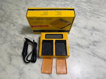 Per cessata attivita fotografica vendo caricatore per batterie fotografica per doppia batteria. Dotato di confezione, cavo auto e coperchi per le batterie
