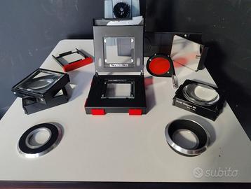 Vendo ingranditore Durst M601per stampare 35mm e 6x6 Esemplare revisionato : vetro superiore nuovo, scorrimento colonna rivisto e tarato, cremagliera efficiente (mancano 2 denti nella parte finale bassa; ininfluenti all’uso). Modello di fascia amatore pro con possibilità di stampare 35mm e 6x6 fino a 40x50 in verticale e senza limiti a parete con la testa ruotabile. Stampa in grande formato anche a pavimento ruotando la colonna (svitando un pomello). Il meccanismo di decentramento e basculaggio, permette di correggere in stampa dimensioni, prospettive e linee cadenti. Presente cassetto porta filtri per stampare sia carta monogrado che multigrade. A corredo: -porta negativi con con vetri per maggiore planarità del negativo. -1x condensatore sivocon 50 -2x condensatori sivocon 80 Perfetti e puliti senza righe macchie o scheggiature -supporti ottica seipla e setopla Meccanica perfetta: tutti i movimenti regolari registrati e lubrificati, Parte elettrica testata perfettamente efficiente Disponibili a parte: -Set di ottiche secondo il vostro stile: Rodenstock Rodagon, rogonar o ysaron Schneider Componon o componar EL-Nikkor , Komura, Kowa Angenieux, Berthiot, leitz ecc. N. B prezzi sotto in euro per set 2 ottiche (35mm-6x6): –30+30 per modelli „base“, –50+50 per modelli intermedi (componar-rogonar) –50+80 - 110+160 per modelli 6 lenti, –per ottiche APO chiedere in sede di acquisto -Lampada a led (+15€) stessa potenza e colore dell'originale: non scalda e rende estremamente longevo l'ingranditore -Eventuali altre lampade con wattaggio diverso a seconda delle necessità -inserti senza vetro -vetro anti-newton Lampade inattiniche vasche pineze ecc... Scambio tra privati di materiale datato: esclusa ogni forma di garanzia. Pagamento con Paypal (+4%) bonifico o contanti alla consegna. Posso spedire al costo di 50€ (con corriere) ma consiglio ritiro a mano. Sconto 5% per studenti di scuole di fotografia, accademie e simili. guarda anche le mie altre vendite