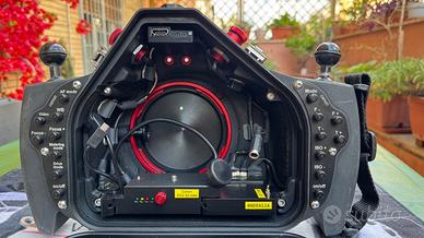 Leo 3 custodia subacquea per Canon Mark IV, completa di monitor Black Macig, 2 torce Esy Dive Revolution 15000, con bracci snodati Carbon Arms.