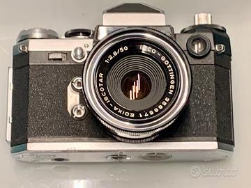 Reflex meccanica Edixa Made in Germany modello REX estremamente difficile da trovare con obiettivo Edixa Iscotar 50mm 2,8. Solitamente la Edixa ha attacco a vite M42 ma questa ha la baionetta e quindi molto difficile da trovare e costosa. La macchina funziona anche se non testata con pellicola. Pentaprisma intercambiabile e esposimetro che segnala il variar della luce. Esatezza non garantita. Con borsa pronto originale.