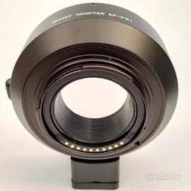 Adattatore in metallo ben costruito compatibile per montare lenti Canon della serie EF e EF-S su fotocamere Fuji x. Adattatore nuovo permette di trasmettere diaframma, messa a fuoco automatica e dati exif. Non compatibile con modelli x-pro 1 e immagino anche con x-T1, provato con una Fuji X- H1 con lenti Canon 50mm 1,8 e 70/200 f4 serie L. Possibilità di aggiornamento software. prezzo di vendita su e-bay più di €100. Lo vendo al prezzo di un adattatore manuale. Ottima alternativa anche per chi vuole montare obiettivi manuali Canon non autofocus con ghiera diaframmi sull'obiettivo.