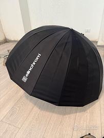 Kit composto da 2 generatori Elinchrom, 2 cavalletti, 2 torce con parabola e cavi, 2 ombrelli, trasmettitore con adattatore.