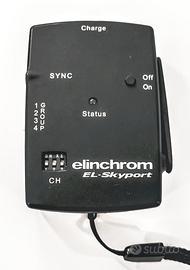 Elinchrom EL-Skyport - Trasmettitore / ricevitore wireless - Il ricevitore universale è compatibile con le unità Classic Elinchrom e con qualsiasi altra marca di flash. Fornito con cavo di sincronizzazione standard EL e jack da 3,5 mm, per il collegamento ad altre marche di flash. La batteria agli ioni di litio interna ricaricabile garantisce circa 30 ore di funzionamento. Per massimizzare la durata della batteria, la funzione Auto-Standby si attiva quando l'unità non viene utilizzata per 4 ore. Il caricabatterie può essere collegato alla rete elettrica mentre il ricevitore universale è in funzione. Il LED di stato mostra le modalità di carica e di funzionamento. Viene fornito kit Skyport dedicato con 1 trasmettitore, 1 ricevitori, 1 caricatore per i ricevitori. Per info: Vittorio