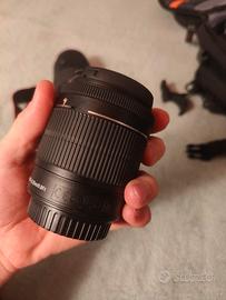 Vendo per inutilizzo EOS 90D + EF-S 18-55mm f/3.5-5.6 IS STM, praticamente nuova, nessun graffio o segno di usura, l'unica pecca è sul obbiettivo 18-55, si e scollato un pezzettino della riga, vedere in foto. Assieme vendo lo zaino, parasole, caricatore, varie cose per la pulizia e un copri obbiettivo per la protezione raggi uv, già montata sull obbiettivo(70-300). Inoltre è presente un secondo obbiettivo, un Canon ef 70-300 mm f/4-5.6 IS II USM Nero. Ho anche tutta la scatola originale, compresa di libretto e tutto il resto.