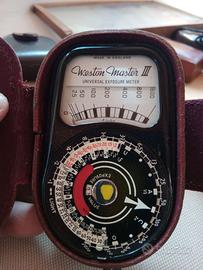 esposimetro vintage WESTON MASTER III con custodia in pelle e laccio in tessuto. anni '60.della ditta sangamo weston ltd VENDUTO VISTO E PIACIUTO