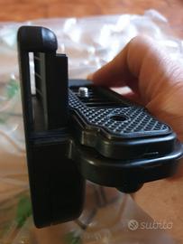 vendo pratico estensore per fotocamera che in posizione chiusa permette di tenerla sulla vita avendo così le mani libere, al momento dell'utilizzo è possibile prenderla e tirarla tramite un filo a molla. Dispongo della scatola originale, spedizione disponibile o consegna a mano in zona nord Milano o provincia nord.