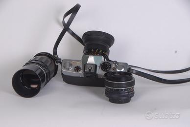 Exakta tl 500 con 50mm+35mm +135mm ottiche senza funghi e muffe, macchina funzionante ,perfetta su tutti i tempi.