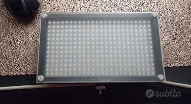 Faretto con 312Led con temperatura colore 3200 fino a 5600K. Test batteria luminosità da 10% fino al 100%.