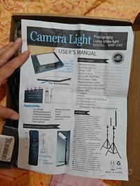 Vendo, per inutilizzo, faretto a led per fotografia con temperatura regolabile e telecomando per controllo da remoto, con stativo sottile ad altezza regolabile