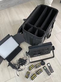 Per inutilizzo vendo coppia di illuminatori a pannello Led, Godox Led LD-500W, potenza 32w, temperatura 5600, con diffusori opalini, completi di 4 batterie NP ricaricabili con caricabatterie, 2 telecomandi, 2 alimentatori da rete, borsa originale per il trasporto, perfettamente funzionanti.
