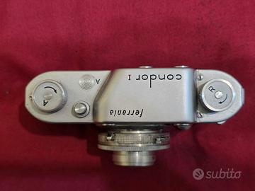 Ferrania Condor I perfettamente funzionante. Macchina revisionata Telemetro modificato con vetro rosso e giallo per un contrasto più elevato. Diaframmi fluidi. Messa a fuoco fluida. Tempi corretti. Correttore diottrie per telemetro perfettamente funzionante. Telemetro tarato. Filtro giallo originale (difficile da trovare) Paraluce originale (difficile da trovare) Possiedo anche la custodia originale con porta filtri e paraluce ma bisogna ricucire. Preferisco ritiro a mano ma posso anche spedire disponibile per qualsiasi prova.