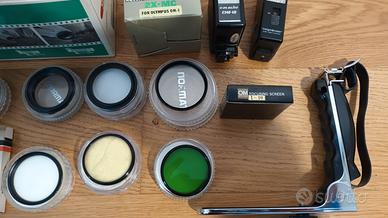 scatola di cartone contenente: filtro tamron 49 mm YA2 arancione vintage filtro tamron 49 mm Po1 verde filtro tamron 49 mm + 3 filtro tamron 49 mm + 1 anello adattatore vite maschio/maschio da 46 a 49 mm anello adattatore da 46 maschio a 49 femmina filtro 6x-cross 55 mm filtro russo ingrandimento x1,4 49mm x0,75 focusing screen olympus elicar 7 element auto teleconverter 2x 8mc for olympus soffietto prolunga seimax for olympus staffa con impugnatura flash eva blitz DM-18 flash voigtlander V200 Auto tutto in blocco euro 100 solo ritiro a mano , non spedisco, zona cinecittà