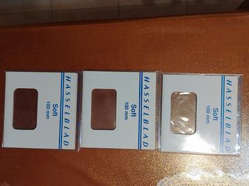 Set 3 filtri Hasselblad Soft. Light, medium, heavy. in ottime condizioni. Dimensioni 100x100 mm.