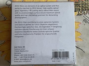 Vendo filtro UV ZEISS T da 82 mm*, originale, completo di scatola e custodia come da foto. Filtro di alta qualità, ideale per proteggere la lente frontale dell’obiettivo e per utilizzo fotografico quotidiano. Caratteristiche: •Marca: ZEISS •Modello: T UV Filter* •Diametro: 82 mm •Completo di confezione originale •Custodia inclusa Condizioni: buone/ottime condizioni estetiche. Venduto esattamente come visibile nelle foto. Compatibile con tutti gli obiettivi con filettatura frontale 82 mm.