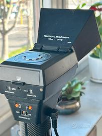 * Telephoto Attachment: Nelle foto è montato l'accessorio per teleobiettivo (135mm), che serve a restringere il fascio di luce per coprire distanze maggiori quando si usano lenti lunghe.