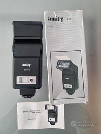 Flash Amity 932TCZ con testa rotante e doppio flash. - Modello: 932TCZ - Marca: Amity - Testa rotante e inclinabile - Doppio flash - Indicatore di lampada pronta - Selettore modalità AUTO-OFF/AUTO