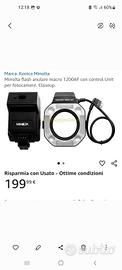 Vendo Flash anulare minolta macro 1200 AF. È in ottime condizioni estetiche e funzionali. Comprende Flash , control unit, 2 anelli adattatori da 52 e 62 mm