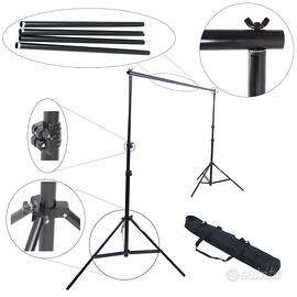 1 fondale arancione melange 3X4 mt con relativi stativi porta fondali, molto stabili e robusti. Tutti gli stativi sono dotati di sacca per il trasporto. Tutto perfettamente funzionante ed in ottime condizioni