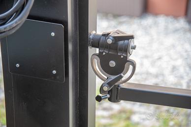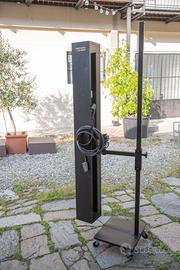 E' incluso lo specifico stativo orientabile a colonna, con base per generatore e ruote.