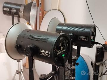 Vendo in blocco causa inutilizzo 3 vecchi ma indistruttibili bowens 400 da studio (1 versione 400bronze e 2 400D), segni di ussra vista l'età, ma perfettamente funzionanti con parabole cavi di alimentazione 1 fotocellula e cavo sincro. E' possibile provarli da me a Milano zona Lambrate. Non spedisco causa peso e ingombro.