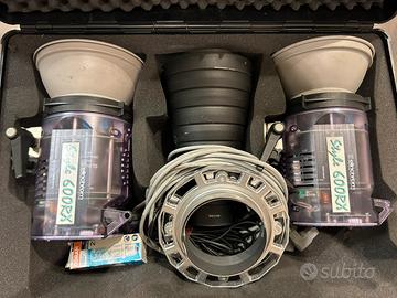 Vendo kit flash Elinchrom, 2 monotorce RX 600, parabole con griglia, snoot con griglie, anelli per soft box, cavo sincro, valigia x trasporto…
