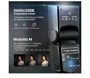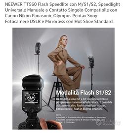 vendo per inutilizzo un Flash NEEWER TT560 Flash Speedlite con M/S1/S2 Compatibile con Canon Nikon Panasonic Olympus Pentax Sony Acquistato su Amazon, usato un paio di volte. perfettamente funzionante se interessati vi mando altre foto perché per comodità ho preso quelle di Amazon le condizioni sono perfette.