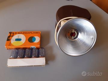 Vendo Flash Ferrania made in Italy con custodia originale unitamente a 5 lampade usa e getta Mazda flash con attacco pf1b per macchina fotografica perfettamente conservate nella scatola originale.