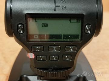Angolo regolabile, piedistallo per posizione off camera, coperchio bianco per luce diffusa e opzione luce continua per riprese video. ricaricabile tramite mini USB, vano batterie (intercambiabili) e confezione originale. Come nuovo.