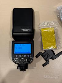 Vendo flash godox TT685II(c) versione per fotocamere Canon, per cambio marchio. Flash perfettamente funzionante, mantenuto in maniera ottima! ❗️vendo completo di tutti gli accessori 📦 scatola originale Verrà spedito con cura in modo tale da non subire danni durante il trasporto. Per qualsiasi cosa potete contattarmi