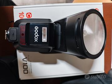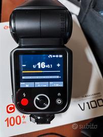 Vendo Flash Godox V100C per Canon, ottime condizioni pari a nuovo, usato pochissime volte. Completo di scatola e accessori di serie.