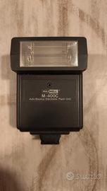 Flash elettronico Maxwells modello M-400C, con Slitta Universale. È un flash con funzione "Auto Bounce", una caratteristica molto utile che permette di inclinare la testa del flash verso l'alto (rimbalzo a soffitto) per diffondere la luce in modo morbido e naturale, evitando le ombre nette e l'effetto "occhi rossi" tipici del flash diretto frontale. La sigla "C" nel nome del modello (M-400C) indica solitamente che è dedicato per fotocamere Canon, ma grazie all'attacco a slitta calda standard, può funzionare in modalità manuale su quasi tutte le reflex e compatte che supportano il contatto centrale (X-sync). È un accessorio perfetto per: Chi usa vecchie reflex a pellicola. Chi cerca un flash semplice ed economico per eventi o uso casalingo. Collezionisti di accessori fotografici vintage. L'oggetto è usato ma in buone condizioni estetiche e funzionali. Lo vendo a un prezzo simbolico. Prezzo: 10 euro