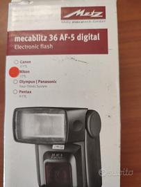 vendesi flash Metz 36 AF 5 per Nikon con scatola paraluce istruzioni.come Nuovo.