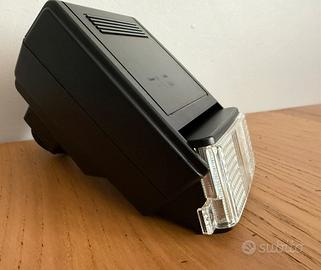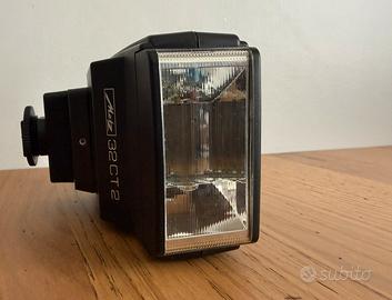 Vendo per inutilizzo flash Metz 32CT2, system sca300, compatibile con attacco slitta flash per fotocamere reflex Minolta MD (NO AF) tramite adattatore SCA 331. Testato senza fotocamera con 4 batterie stilo AA (non incluse) e funziona. Leggerissime tracce ossido su alcuni contatti delle batterie, che non compromettono in alcun modo il funzionamento, vedi foto. Made in Germany.