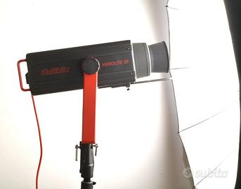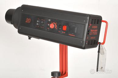 2 Flash da studio Multiblitz Variolite 20.In eccellenti condizioni ed usati pochissimo. Tubo flash e Lampada alogena sono inclusi. I Multiblitz possono essere visionati e testati a Ivrea vicino a Torino. Specifiche tecniche: - potenza 2000Joule/Cad- Campo di controllo, continuo su 3 stop da 250 J a 2000 J - Luce pilota min. 200W max. 650W - Gamma di controllo, luce pilota Watts proporzionali al flash - Numero guida con riflettore standard, argento, diametro 30 cm, 50° 100 ASA/metri 200 - Velocità flash al 100% di carica sec.1.3-3.0/2.2-5.3 - Durata flash t 0,5 sec 1/250-1/400 - Temperatura colore K 5600 - Tensione di rete (50-60 Hz) V 220/240 - Dimensioni mm 587x174x174 - Peso kg 10,5 - Passaggio dalla ricarica rapida a quella lenta quando le reti elettriche sono deboli - Corpo in profilati di alluminio estruso con ampie alette di raffreddamento - oltre all'indicatore visivo di pronto flash (LED verde), c'è un indicatore acustico che può essere attivato/spento - controllo del flash con fotocellula - Luce pilota proporzionale a 2 stadi - È possibile collegare un telecomando, che vendo separatamente oppure in sconto se acquistati entrambi. Costo di 400 euro/cadauno. Possibile e preferito Ritiro diretto oppure spedisco